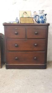 Victorian mahogany chest of draws. Although in need of a bit of TLC, we still think its a beautiful piece. Full of character and rustic charm.