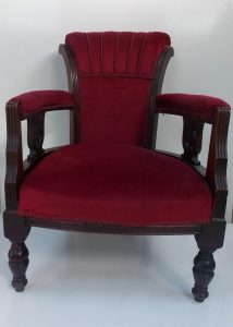Antique Victorian (or possibly Edwardian) carved walnut armchair. Attractive and well made. A heavy, solid and strong chair. The upholstery is old, with wear and marks. Historic knocks, marks, cracks, scratches, repairs and alterations, as is always the way with antique furniture of this age. Historical repairs, as is the norm, but all is solid now. We have not inspected components concealed beneath the upholstery, but the seat is quite soft and comfortable. No visible woodworm.